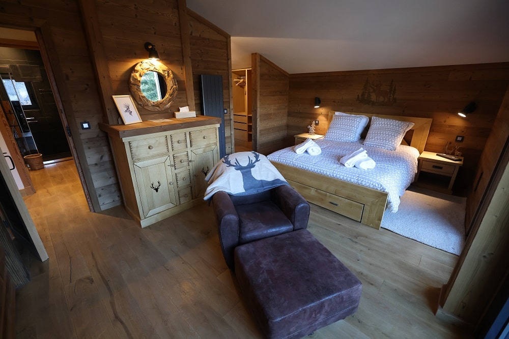 Au rez-de-chaussée, vous bénéficiez d’un studio de service, de deux chambres, de trois salles d’eau avec toilettes, d’un garage et d’un local pour entreposer les skis. Le premier étage est l’espace à vivre, avec un vaste salon de 80 m² et une cuisine américaine, ainsi qu’une réserve et deux toilettes. Le deuxième et dernier étage constitue l’espace principal de repos avec la chambre de maître, et son dressing, une chambre d’adultes et deux chambres d’enfants. Cet étage possède aussi deux salles de bains et deux toilettes, pour le confort de tous.